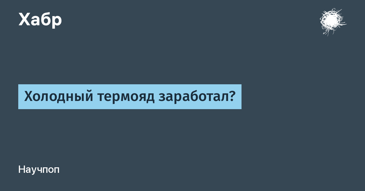 На cnews появилась новость «Холодный термояд заработал?», где сообщается, что у итальянских физиков получилось создать реактор на холодном термоядерном синтезе.