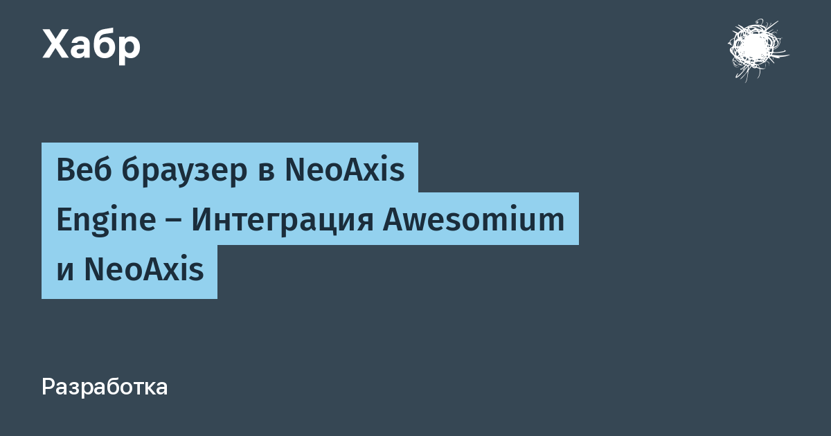 NeoAxis Group, разработчики отечественного игрового движка NeoAxis, собщают об успешной интеграции библиотеки Awesomium. Awesomium — фреймворк, основанный на движке Chromium/WebKit, который теперь может быть подключен к NeoAxis в качестве расширения. Используя Awesomium разработчики могут встраивать веб-страницы, находящиеся онлайн, в свои приложения, будь то игры или что-либо другое — реализуя таким образом уникальные и оригинальные возможности геймплея или элементы игрового дизайна. По сути это полнофункциональный веб-браузер прямо внутри игрового движка.