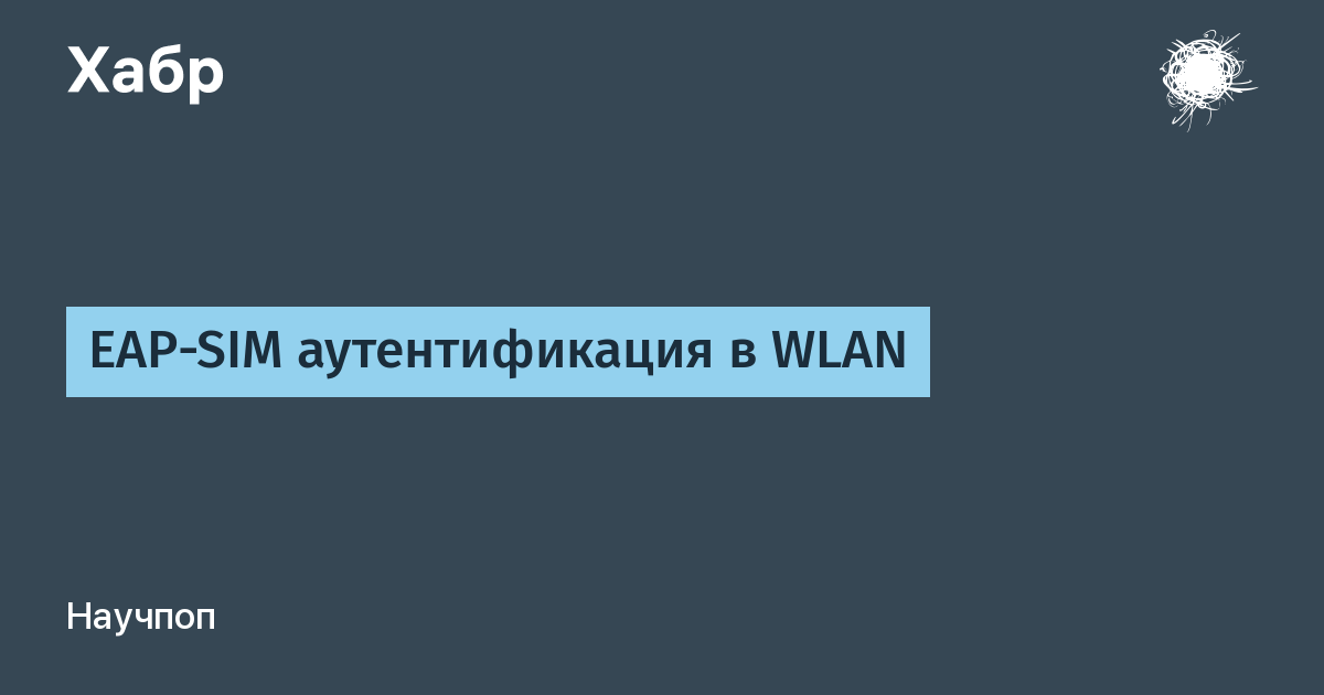 Основная идея EAP-SIM аутентификации в WLAN (802.1X) сетях это использование аутентификационных параметров и алгоритмов SIM карты для аутентификации пользователя и шифрования трафика в WLAN сетях. При этом, пользователю не придется вводить логин и пароль, вся аутентификация происходит «прозрачно».