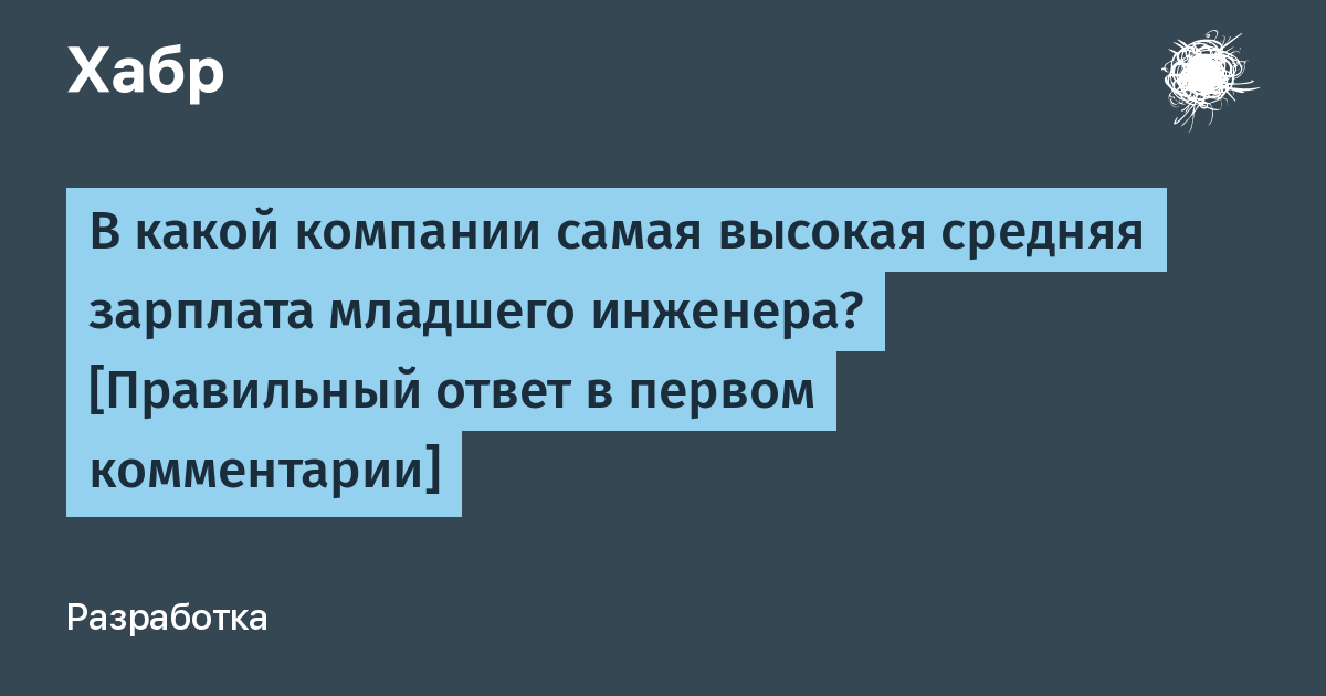 В какой компании самая высокая средняя зарплата младшего инженера? [Правильный ответ в первом комментарии]