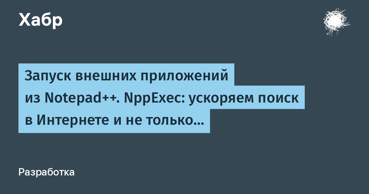 В моем примере я использовал переменную окружения (переменная среды, англ. environment variable) CURRENT_WORD, но возможности дополнения NppExec гораздо шире, чем просто ускорение поиска в Интернете. C помощью этого плагина можно запускать практически любые внешние приложения и передавать им обширный ряд переменных – как собственных, так и системных переменных Windows. Это подробно описано в статье How to Run an external program from Notepad++ на сайте sourceforge.net, перевод ��оторой я представляю ниже.