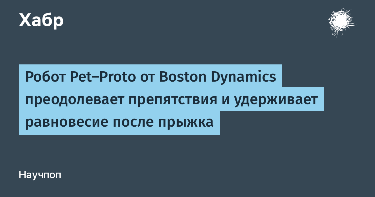 Робот Pet-Proto от Boston Dynamics преодолевает препятствия и удерживает равновесие после прыжка