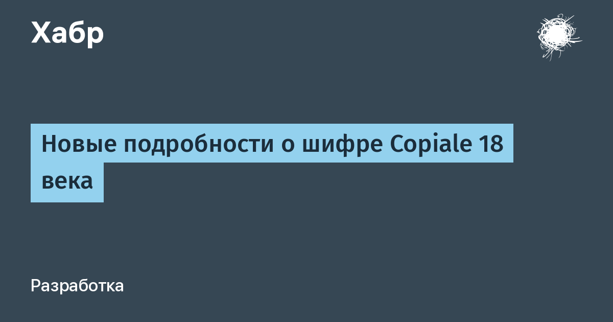 Copiale Cipher — рукописный 105-страничный манускрипт конца XVIII века, обнаруженный среди научных архивов ГДР. Том в искусном переплёте из золота и зелёной парчи содержит 75000 символов текста. Он содержит математические символы и римские буквы, символы Сатурна и Венеры, греческие буквы вроде пи и гаммы, большие овалы и пентаграммы. Единственными понятными словами являются Philipp 1866 в начале и Copiales 3 в конце.