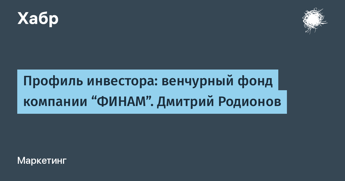 Продолжаю публиковать с небольшой задержкой некоторые материалы из своего блога о венчурных инвестициях, венчурных инвесторах и стартапах IdeaBlog.ru. Этот материал из рубрики блога Venture Capitalst's Profile, в котором я раз в неделю публикую профиль очередного венчурного инвестора, составленный по результатам личной беседы с ними, и рассказывает об инвестиционных предпочтениях и требованиях к проектам венчурного фонда компании Финам. Оригинал статьи находится здесь.