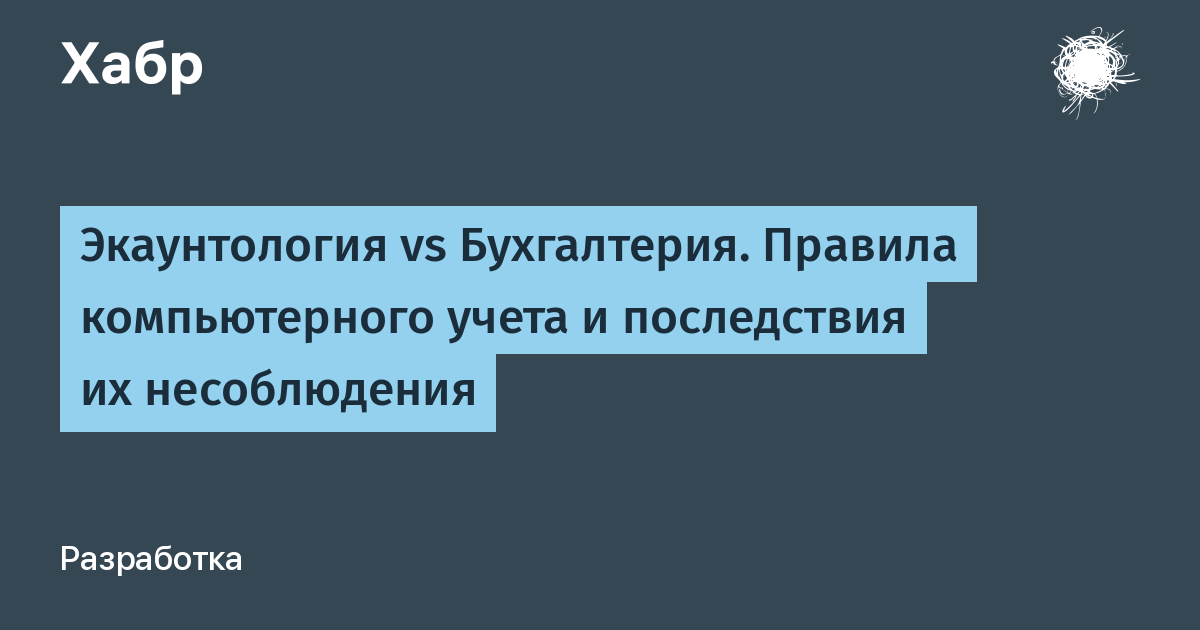 Позвольте в рамках обучающего курса по экаунтологии предложить несколько правил компьютерного учета, а чтобы они не выглядели слишком элементарными, привести примеры их злокозненного нарушения в бухгалтерской практике. На Хабре много специалистов, которым доводилось автоматизировать бухгалтерию, – надеюсь, «чудеса» бухгалтерской методологии покажутся им небезынтересными. Должны же люди осознавать, насколько устаревшую методологию они автоматизируют?