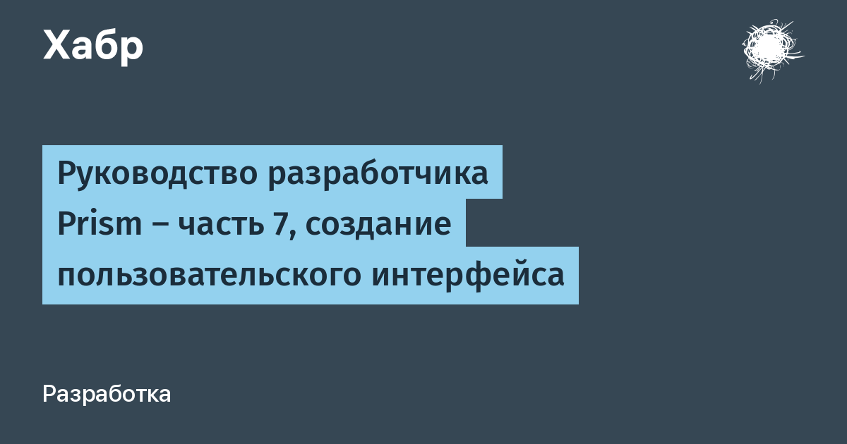 Page), или шаблон данных. Представление инкапсулирует те части пользовательского интерфейса, которые вы хотите держать в отдалении от всего остального приложения. Выбрать то, что будет содержаться в представлении можно как на основе разделение функциональности, так и на основе повторного использования частей интерфейса в пределах приложения. Благодаря модели содержимого, используемой в WPF и Silverlight, для создания представления не требуется ничего относящегося к Prism,. Наиболее простой способ создания представления заключается в создании пользовательского элемента управления (