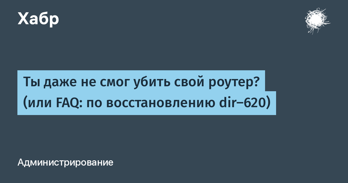 Существуют множество альтернативных прошивок для маршрутизаторов Dlink. После перехода на них могут возникнуть проблемы, а именно: дивайс не эффективно начнет работать или просто умрет. Если все таки прошили его не удачно. Это инструкция для вас и только для тех dir-620, которые не до конца сдохли. То есть он загружается, сетевая плата ПК не может с ним связаться по Ethernet интерфейсу.