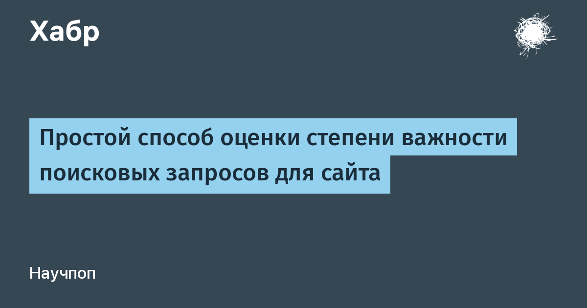 Одна из самых частых проблем моих клиентов — это ограниченность бюджета. В этом случае важно точно расставить приоритеты по каждому запросу. В материале я покажу один из самых простых и быстрых, но эффективных способов определить важность запросов для вашего сайта. Причем это не просто «важно, не важно, очень важно», а вполне конкретные цифры, которые можно сравнивать и анализировать. Для примера я буду использовать реальные, но упрощенные данные.