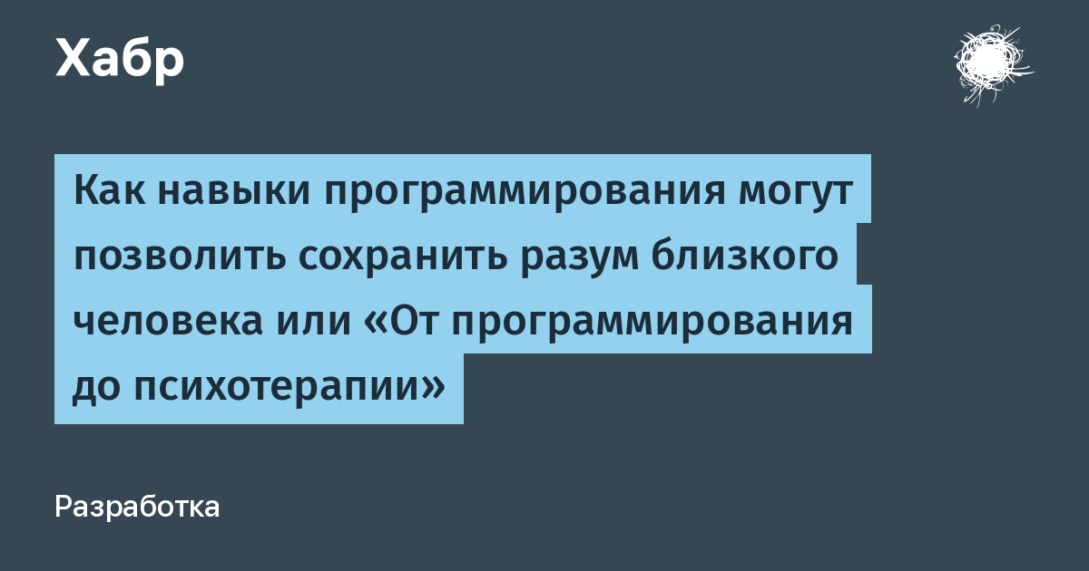 В этом кратком очерке я напишу про то, как навыки программирования дали мне возможность помочь близким выйти из глубокой депрессии, а другим жить социальной жизнью, несмотря на параноидальную шизофрению.