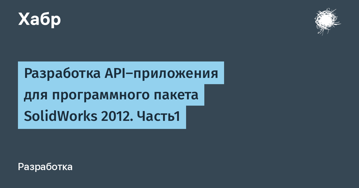 SolidWorks API (Application Programming Interface) — это интерфейс, позволяющий разрабатывать пользовательские приложения для системы SolidWorks. API – интерфейс содержит множество функций, которые можно вызывать из программ Microsoft Visual Basic, Microsoft Visual C++, Microsoft Visual Studio или из файлов-макросов SolidWorks. Эти функции предоставляют программисту прямой доступ к функциональным возможностям SolidWorks.