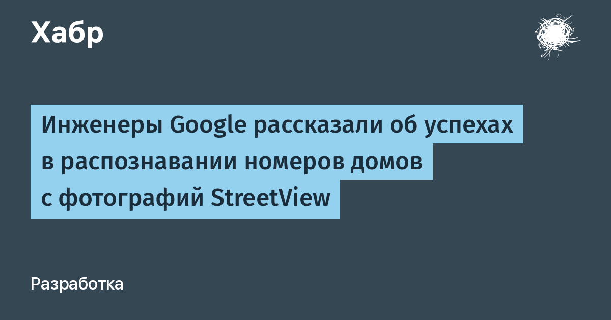 Работа называется Multi-digit Number Recognition from Street View Imagery using Deep Convolutional Neural Networks и в ней речь идёт о использовании нейронных сетей для целей распознавания. Как очевидно, дело сильно осложняется множеством факторов: разные места расположения номера дома, цвет таблички, её всевозможные наклоны, качество как самой таблички, так и её фотографии, и целый ряд других.