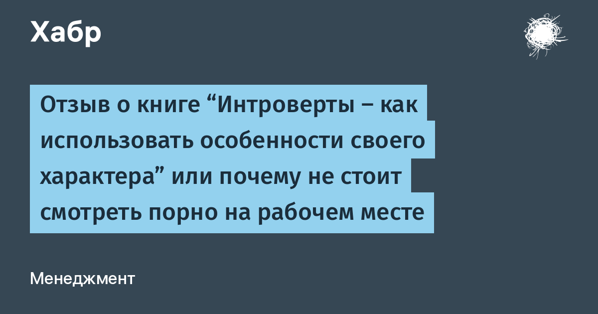 Пятая глава, например, имеет подзаголовок “за пределами темперамента (и секрет публичных выступлений для интровертов)". Хотя сам “секрет” рассмотрен где-то ближе к концу главы, и совсем он не секрет… Но я не буду его цитировать. Лишний повод прочитать саму книгу, поверьте, будет интересно. ;)