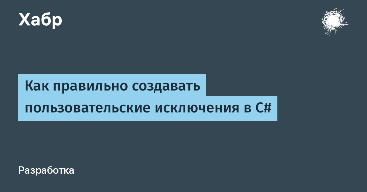 Данная статья предназначена прежде всего для новичков в мире .NET, но может быть полезна также и разработчикам с опытом, которые не до конца разобрались, как правильно строить свои user-defined exceptions с помощью C#.
