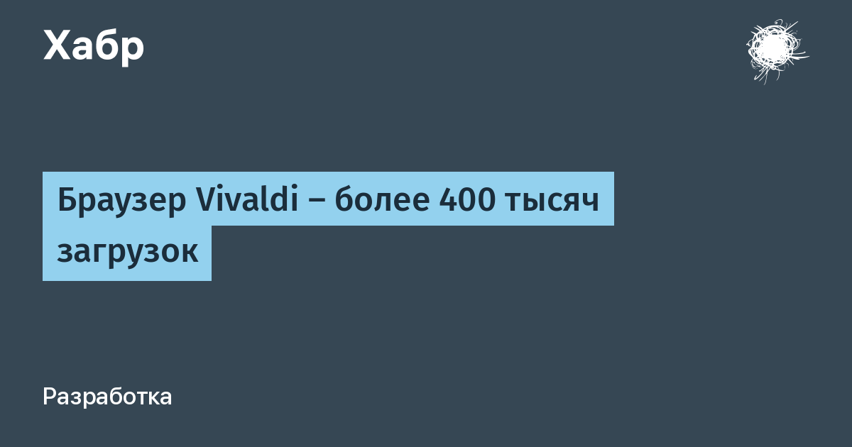 Сегодня Йон фон Тэчнер поделился хорошей новостью в своём блоге. За неделю со дня выхода первой публичной тестовой версии Vivaldi более 400 тысяч пользователей загрузили браузер с нашего сайта. Это очень хороший результат, который показывает ваш интерес к тому, что мы делаем. Одновременно эта цифра говорит и о правильности сделанного нами выбора — такой браузер, как Vivaldi, возвращающий в мир браузеров традицию создавать приложение для пользователей и вместе с пользователями, позволяющий вам контролировать браузер, а не наоборот, оказался востребован на весьма тесном рынке. Такое число загрузок даёт нам стимул ещё активнее развивать Vivaldi, чтобы как можно быстрее предложить вам первый стабильный и достаточно функциональный (для первой версии, конечно) релиз.