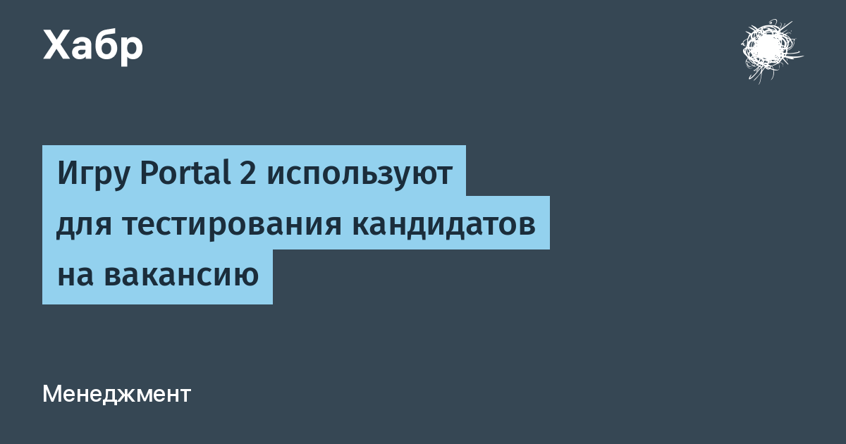 Довольно молодая компания WibiData, специализирующаяся на системах управления данными, придумала очень интересный способ тестирования кандидатов на собеседованиях. Они предлагают проходить специальные уровни в игре Portal 2. Как пишет игромания, глава компании Кристоф Бисцилия признался, что на идею его навел случай, когда юноша с помощью мода Portal 2 сделал девушке предложение. «Многослойные головоломки Portal 2, по моим ощущениям, тренируют те же отделы мозга, которые работают у программистов и тестеров», — объяснил Кристоф.