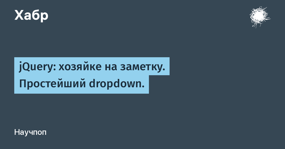 Мне понадобилось сделать дроп даун меню. Причем из всей линейки только у одного пункта. Не хотелось привлекать тяжеловесные плагины для jQuery, но что поделаешь, раз надо так надо. Тяжеловесные это сколько? 5-15К. Причем 5К, если без учета еще пары сторонних необходимых плагинов. В общем не так смертельно.
