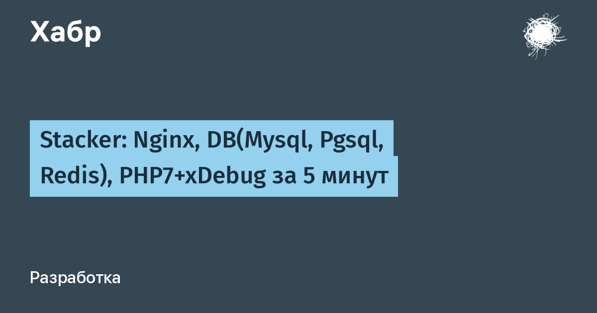 Устали от LAMPов, MAMPов, ручной настройки, конфликтов? Хотите получить полностью настроенное и готовое к работе окружение для web разработки с Nginx, DB(Mysql, Pgsql, Redis), PHP7 на борту и с настроенным xDebug и все это за 5 минут? Stacker идет на помощь!