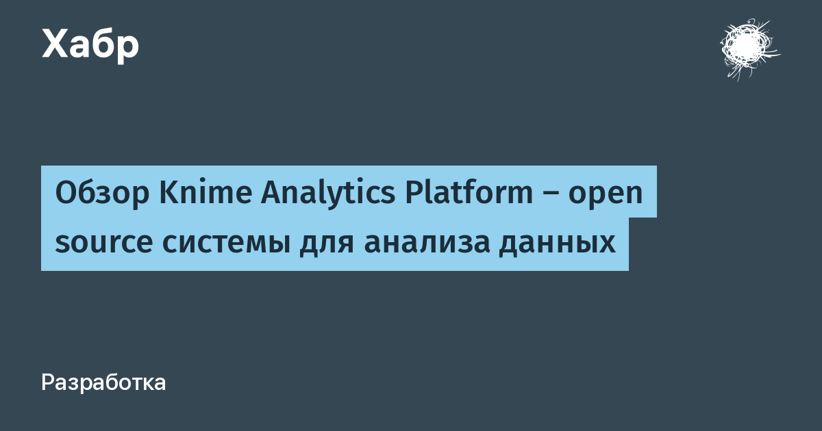 Вашему вниманию представляется обзор Knime Analytics Platform – open source фреймворка для анализа данных. Данный фреймворк позволяет реализовывать полный цикл анализа данных включающий чтение данных из различных источников, преобразование и фильтрацию, собственно анализ, визуализацию и экспорт.