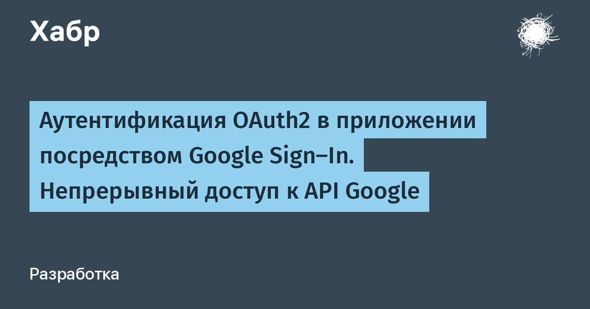 "id_token":"eyJhbGciOiJSUzI1NiIsImtpZ…" }"access_token" – токен доступа, ради которого всё проводилось"expires_in" – время жизни access токена, по умолчанию токен живет 1 час, а в сутки можно получать по запросу 25 токенов, не более. "token_type" – тип токена, его тоже необходимо запомнить, он также вставляется в запрос к api в дальнейшем."refresh_token" – токен для обновления access токена, когда пройдет час жизни. Refresh токен неизменен. Часто на форумах видела проблему, с которой сталкивалась и сама: в запросе не приходил этот токен. Ошибки заключаются в неправильном получении учетных данных, либо неправильные запросы. Если авторизация проводилась через WebView, и в url не указывался такой важный параметр как access_type=offline, то refresh токен попросту не приходил.5. Обновление Access токена