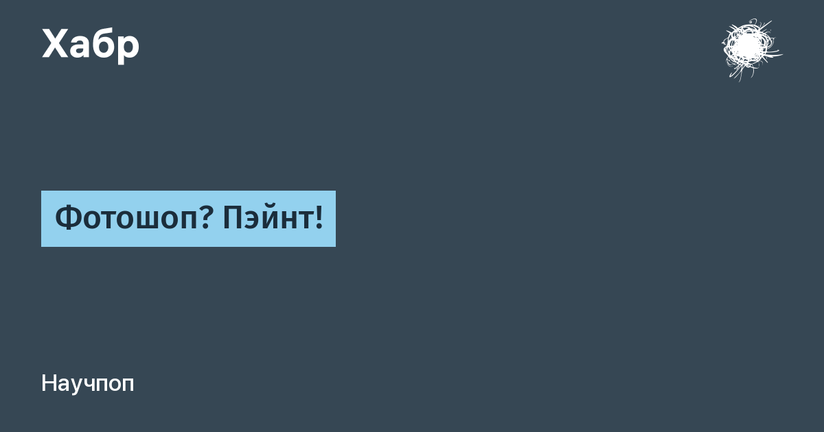 @BadMinus22 фев 2007 в 10:42Фотошоп? Пэйнт!Время на прочтение1 минОхват и читатели671ЧуланНатыкаясь на всяких блогах, ресурсах на посты статьи в которых явно проглядывается фотошоп люди начинают комментировать и кричать фотошоп фотошоп!!! Предлагаю менять привычку а то надоело уже. Давайте писать Пэйнт! Пэйнт! ;)Теги:языкХабы:Чулан