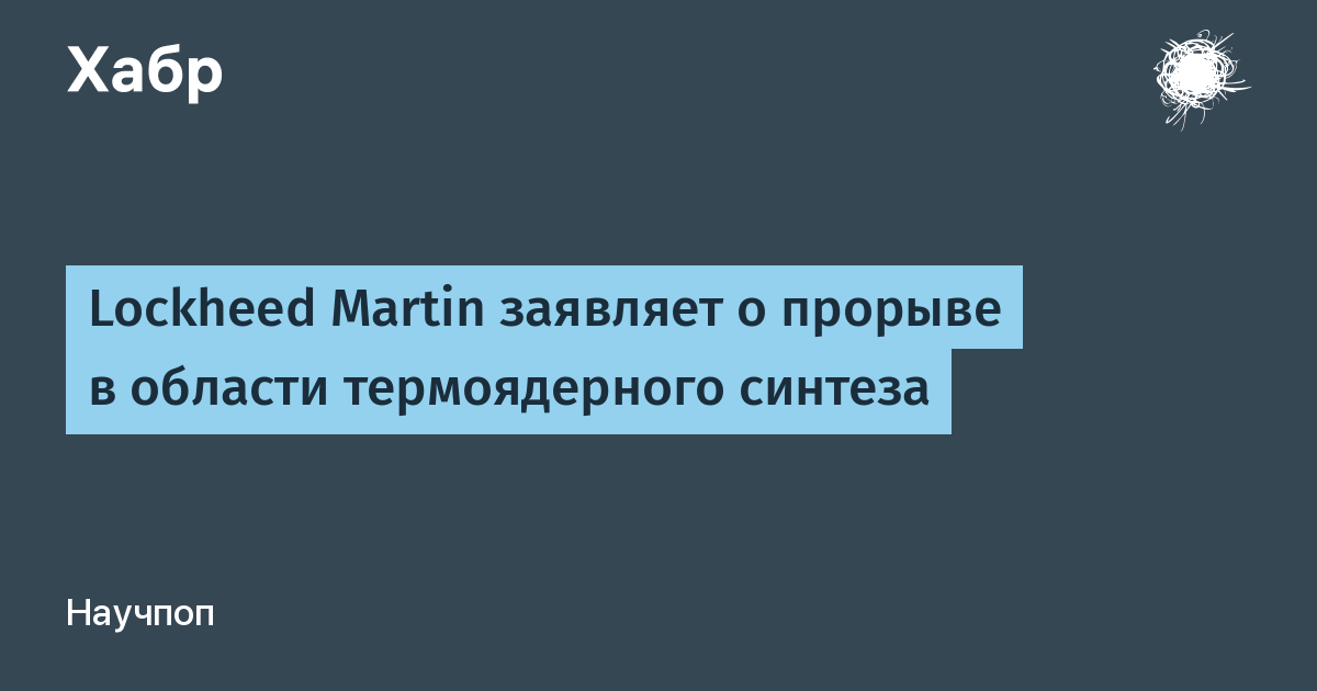 Корпорация Lockheed Martin заявила 15 октября, что они сделали технологический прорыв в развитии источников питания на основе ядерного синтеза. И первый, достаточно малый реактор, который способен поместиться в кузове грузовика, может быть готов для использования в течение ближайшего десятилетия.