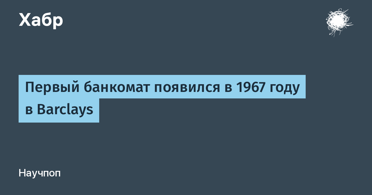Почти 50 лет назад банк Barclays открыл первый автомат по выдаче денежных средств в Энфилде в северной части Лондона. Банкомат принимал не пластиковые карты, а бумажные ваучеры. Выдача средств ограничивалась 10 фунтами.