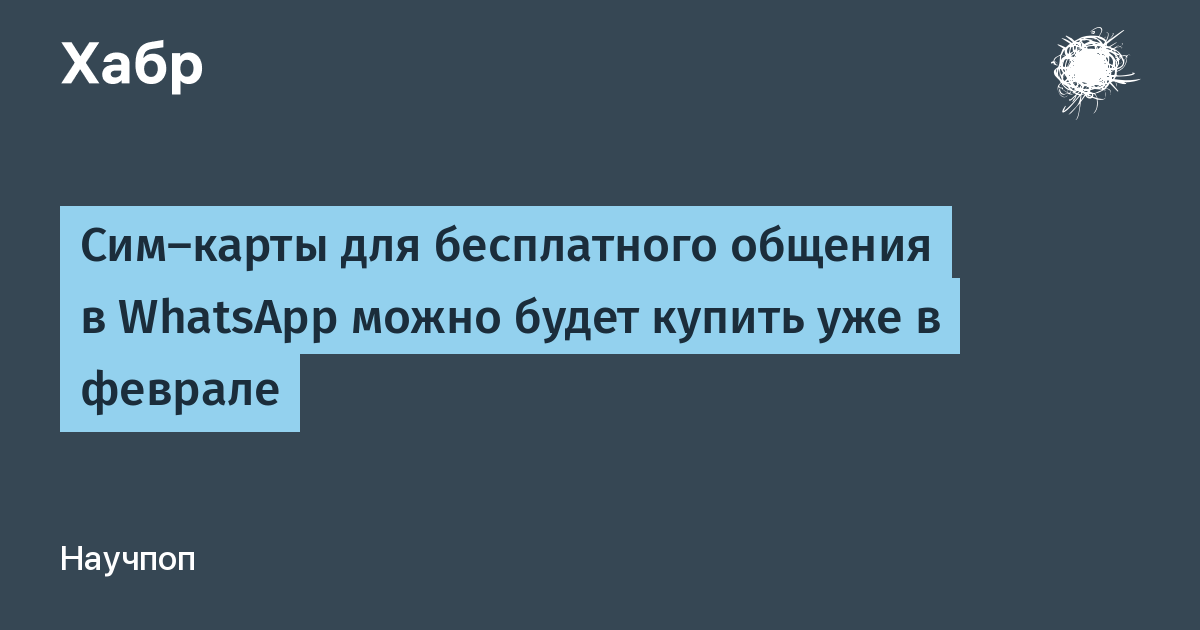 Итальянский оператор Zeromobile анонсировал SIM-карту WhatSim, с помощью которой можно за €10 в год обмениваться текстовыми сообщениями в мессенджере WhatsApp любом объеме в 150 странах мира. SIM-карта WhatSim будет работать в сетях свыше 400 операторов в 150 странах – в том числе в России и других странах, популярных у российских туристов.