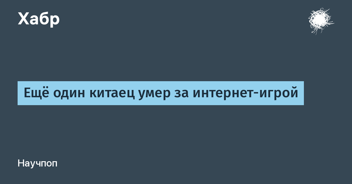 26-летний китаец Сюй Янь, житель города Цзиньчжоу (провинция Ляонин), скончался прямо во время интернет-игры. По словам его родителей, он проводил практически всё время (то есть семь дней — столько длятся каникулы, связанные с местным Новым годом) за компьютером.