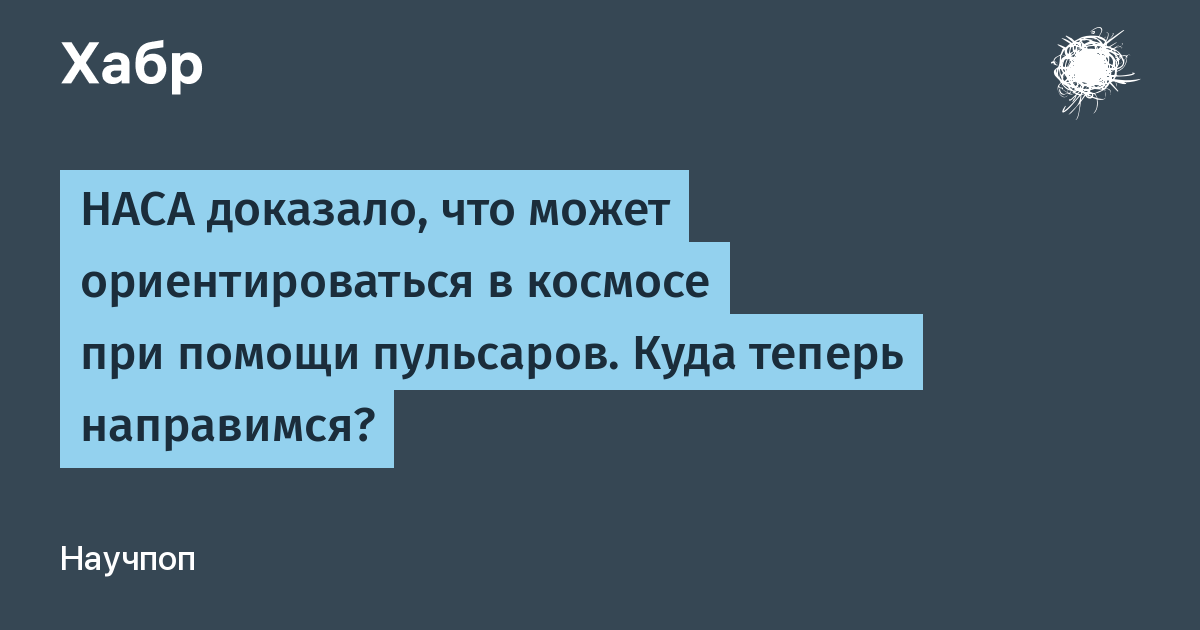 Однако в середине января Гендеро и команда исследователей НАСА объявили, что они, наконец, доказали способность пульсаров играть роль космической системы навигации. Они по-тихому выполнили демонстрацию этого в ноябре 2017, когда "Найсер" [Neutron star Interior Composition Explorer, NICER], прибор для измерения пульсаров размером со стиральную машину, доставленный на борт МКС, провёл пару дней, наблюдая за электромагнитным излучением пяти пульсаров. С помощью улучшения «Секстант» [Station Explorer for X-ray Timing and Navigation Technology, SEXTaNT — навигация на основе рентгеновского излучения пульсаров] «Найсер» смог определить расположение станции на орбите земли с точностью до 4 км — при этом перемещаясь со скоростью более 27 000 км/ч.