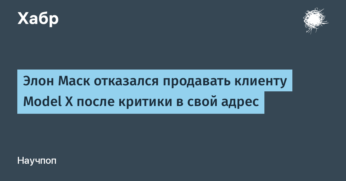 С точки зрения рынка Tesla также вполне может себе это позволить. На Model X поступило уже более 30 тысяч заказов, и лишь 23 тысячи машин будет произведено в 2016 году. Возможно, Маск решил, что целесообразнее будет не тратить время и силы на клиента, который начал критиковать его самого и его компанию ещё до того, как получил свой автомобиль.