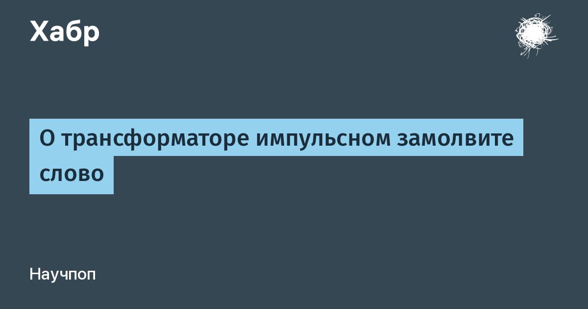 Я хочу поведать вам о том, как расчитать такого хитрого зверя, как импульсный трансформатор обратноходового источника питания. Обратноходовик, или FlyBack — это, наверное, самая популярная топология импульсного преобразователя. По моему мнению, в ИИП есть два очень важных и тонких момента — это трансформатор и петля обратной связи. В данной статье я хочу показать один из возможных наборов несложных математических уравнений, решая которые мы можем получить данные вполне реального трансформатора для флайбэка.