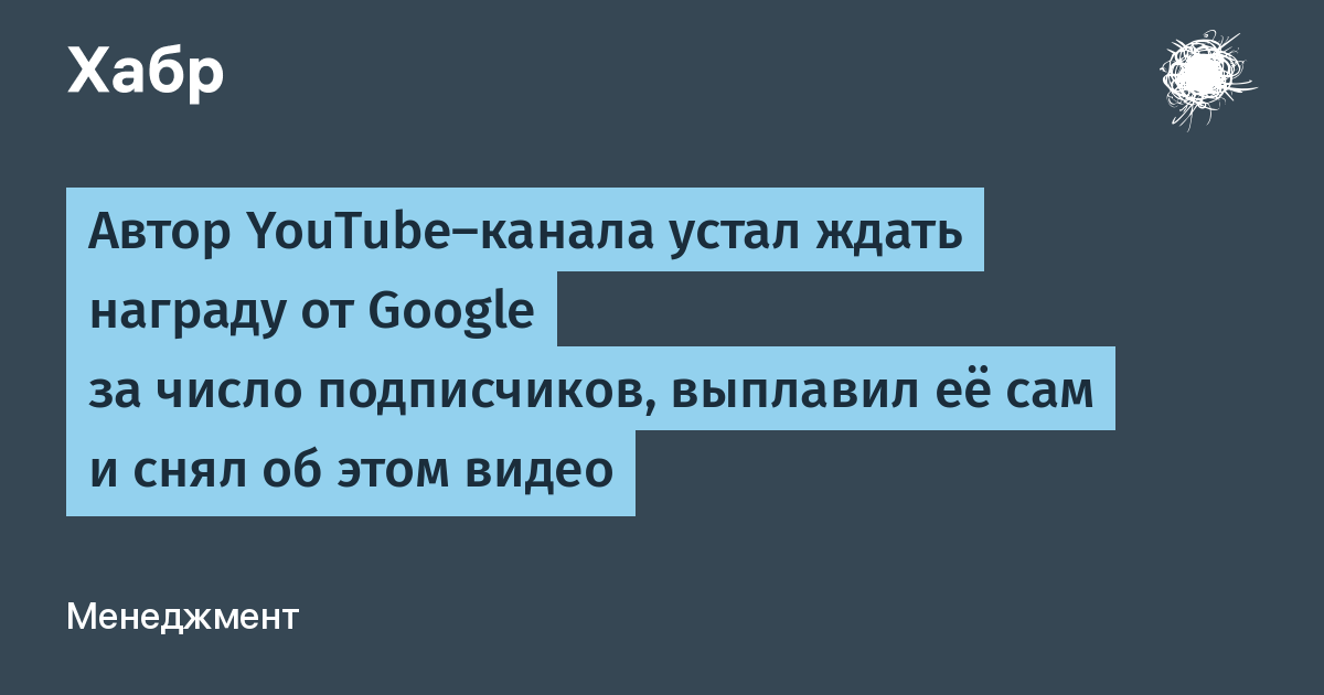 Коди Дон Ридер (Cody Don Reeder), автор научно-популярного канала на YouTube Cody's Labs, специализируется на видео всевозможных химических экспериментов. Несмотря на некоторую специфичность канала, он весьма популярен у аудитории, и около 7 месяцев назад число подписчиков Коди превысило 100 000 человек. Согласно правилам YouTube, автор такого канала получает символическую (физически существующую, которую можно потрогать) серебряную кнопку Silver Play Button; следующий этап — Золотая кнопка Gold Play Button — присваивается за достижение отметки в 1 миллион подписчиков.