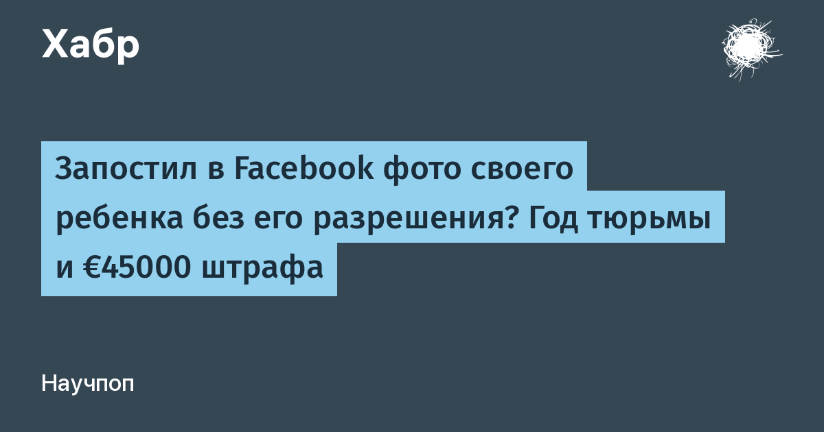 На днях французских родителей власти предупредили граждан о том, что размещение фотографий своих детей в социальных сетях без разрешения на то самих детей чревато наказанием для взрослых. Строгие законы Франции по защите частной жизни граждан позволяют штрафовать родителей на сумму в €45000 или даже приговорить незадачливых родственников на год тюремного заключения, если будет доказано, что родители запостили фото детей без разрешения на то самих детей. Этот закон работает не только в отношении детей — во Франции аналогичное наказание ждет всех, кто размещает фото других людей без разрешения, в случае, если последние обратятся в суд.