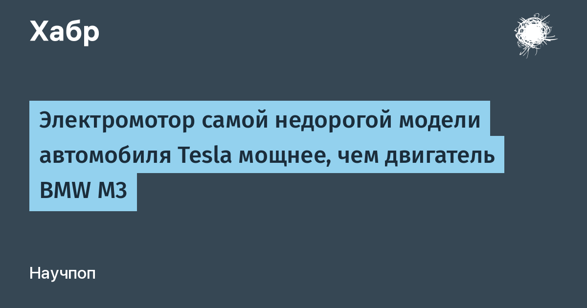 Кроме того, Model 3 получила 435-сильный электромотор. Об этом сообщил технический директор Tesla. Это даже больше, чем у BMW M3, где установлен трехлитровый шестицилиндровый твин-турбо двигатель (максимум — 431 л.с.). Благодаря мощному мотору самая медленная модификация модели сможет разгоняться до 96 километров в час всего за 6 секунд. У старшей модели с продвинутым режимом Ludicrous Mode на разгон до этой скорости уйдет всего 4 секунды.