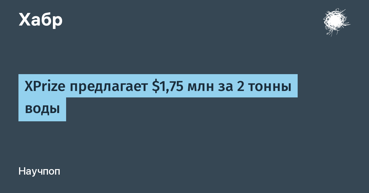 Для того, чтобы решить проблему, XPrize предлагает $1,75 млн тому, кто извлечёт две тонны воды из воздуха за день по цене в 2 цента США за литр или меньше, с учетом операционных и капитальных расходов. При этом есть ряд условий, среди которых — необходимость использования альтернативных источников энергии и работа лишь с технологиями, которые существуют уже сейчас.