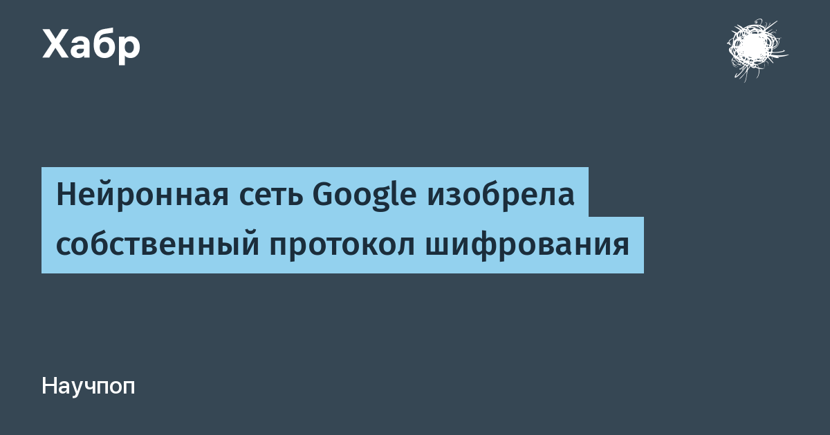 Сотрудники Google Brain, одно из подразделений корпорации Google, занимающееся вопросами глубинного обучения, создали нейросеть, которая разработала собственный протокол шифрования. Исследователи Мартин Абади и Давид Андерсен показали, что нейронные сети в состоянии разрабатывать простые способы шифрования сообщений.