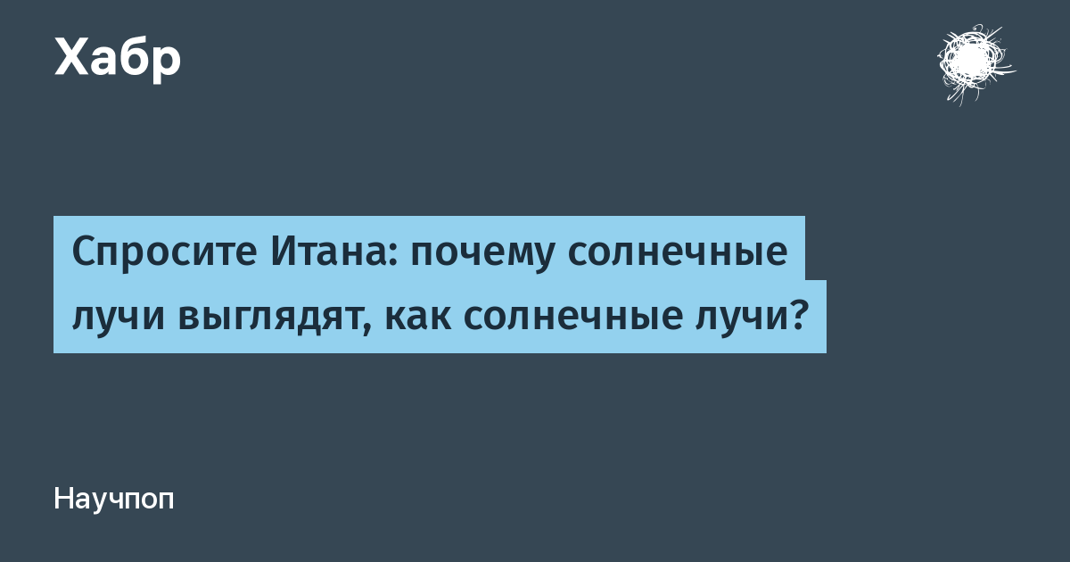 Если посмотреть на Солнце, когда оно частично закрыто облаками и прячется за этими комками атмосферной воды, вы можете увидеть знакомое зрелище: лучи света, пробивающиеся сквозь облака, и падающие на землю. Иногда они кажутся параллельными, иногда кажется, что они расходятся. Иногда может видеть форму Солнца через облака. Почему так происходит? Наш читатель на этой неделе спрашивает: