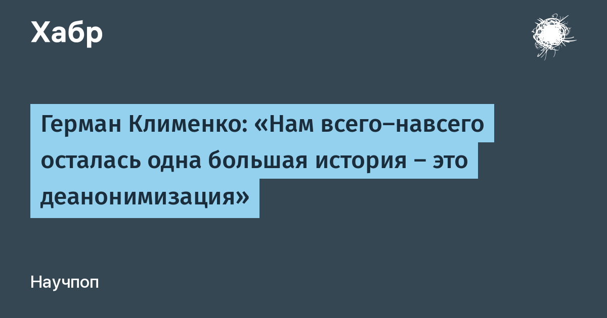 В начале июня я приехал на конференцию РИТ++, чтобы провести время с коллегами, которые организовали хабрастудию, а вечером отметить 11-й день рождения «Хабра». Мы вели прямую трансляцию с мероприятия и брали интервью у спикеров. Когда мне предложили взять интервью у Германа Клименко, советника президента РФ по вопросам развития интернета, я сразу согласился, потому что, во-первых, давно с ним знаком, ещё с начала 2000-х годов, а во-вторых, давно не видел, лет 10, наверное. Ну а в-третьих, у меня накопилось достаточно вопросов к людям, которые в том числе имеют отношение к развитию интернета в России. Поскольку формат интервью предполагал всего 10 минут общения, а Герман за время интервью ответил всего на несколько вопросов, я предложил отдельно встретиться и поговорить более обстоятельно. Мы беседовали 1,5 часа, ниже я предлагаю вашему вниманию текстовую версию интервью с небольшими сокращениями там, где они были возможны.