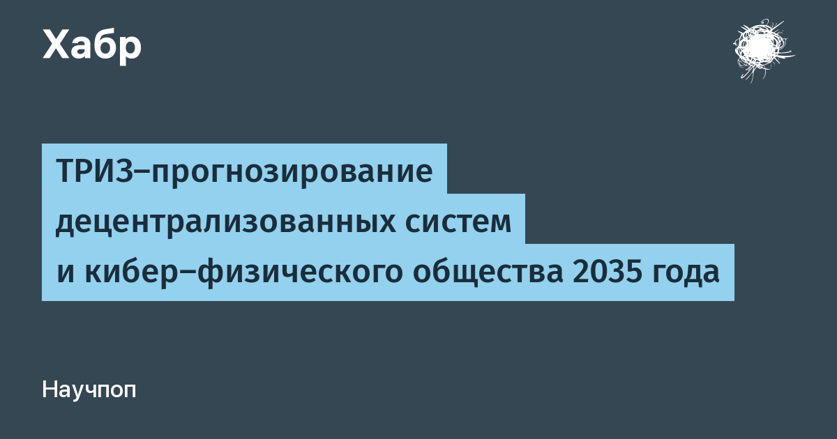 Я решил присоединиться к этой славной компании творцов грез о будущем и нарисовать картину ближайших десятилетий. Единственное различие — я взял для этого один самых мощных инструментов прогнозирования — ТРИЗ. (Теория Решения Изобретательских Задач)