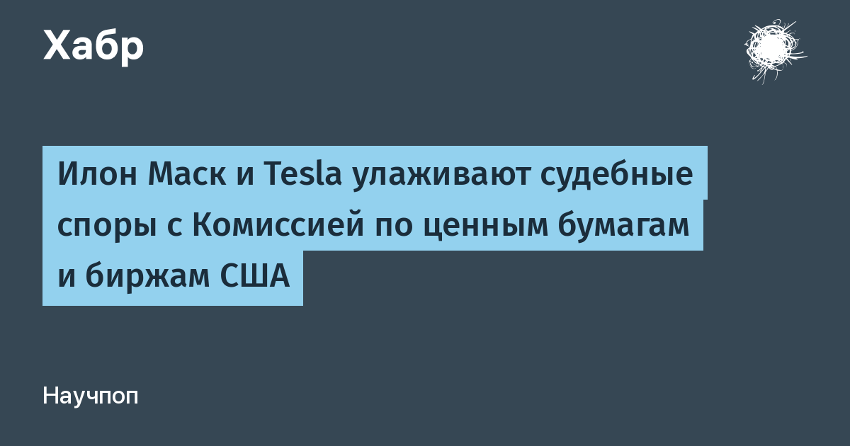 «Средства правовой защиты и помощи, примененные сегодня, специально разработаны для решения проблем, связанных с проступком Илона Маска, путем укрепления корпоративного управления и надзора за Tesla в интересах инвесторов», — говорится в заявлении представителя Комиссии по ценным бумагам и биржам США Стефани Авакян.