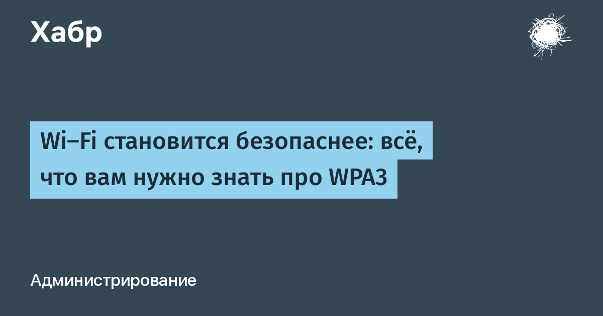 Недавно Wi-Fi Alliance обнародовал крупнейшее обновление безопасности Wi-Fi за последние 14 лет. Протокол безопасности Wi-Fi Protected Access 3 (WPA3) вводит очень нужные обновления в протокол WPA2, представленный в 2004 году. Вместо того, чтобы полностью переработать безопасность Wi-Fi, WPA3 концентрируется на новых технологиях, которые должны закрыть щели, начавшие появляться в WPA2.