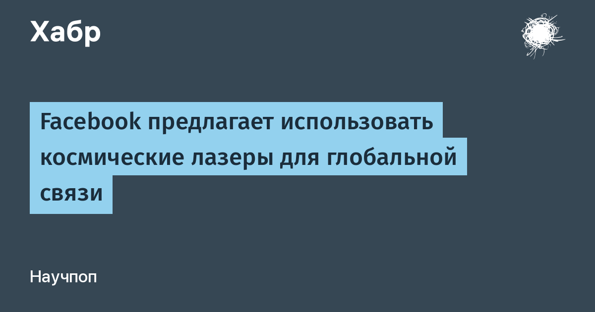 Компания Facebook раньше предлагала создать сеть из беспилотных дронов, которые смогли бы обеспечить связью жителей труднодоступных регионов. Сейчас планы Facebook изменились, вместо дронов предлагается использовать космический лазер.
