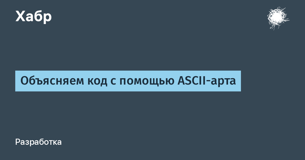 Большинство людей — визуалы. Они используют изображения, чтобы вникнуть в суть проблемы. А вот мэйнстримные языки программирования, напротив, основаны на текстовом представлении. Возникающую пропасть между текстом и графикой заполняют ASCII-изображения, нарисованные с помощью текстовых символов и вставленные в исходный код программы. Я их обожаю! Как-то раз я кинул клич в Twitter и мне прислали гораздо больше примеров, чем я ожидал. Спасибо всем участвовавшим. В этой теме попалось несколько прекрасных примеров, которые я собрал и разложил на категории. Для каждого изображения дается ссылка на соответствующий репозиторий.