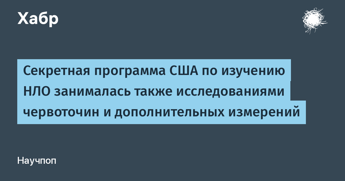 Привет, Хабр! Представляю вашему вниманию перевод статьи «The Government’s Secret UFO Program Funded Research on Wormholes and Extra Dimensions» автора Sarah Emerson.
