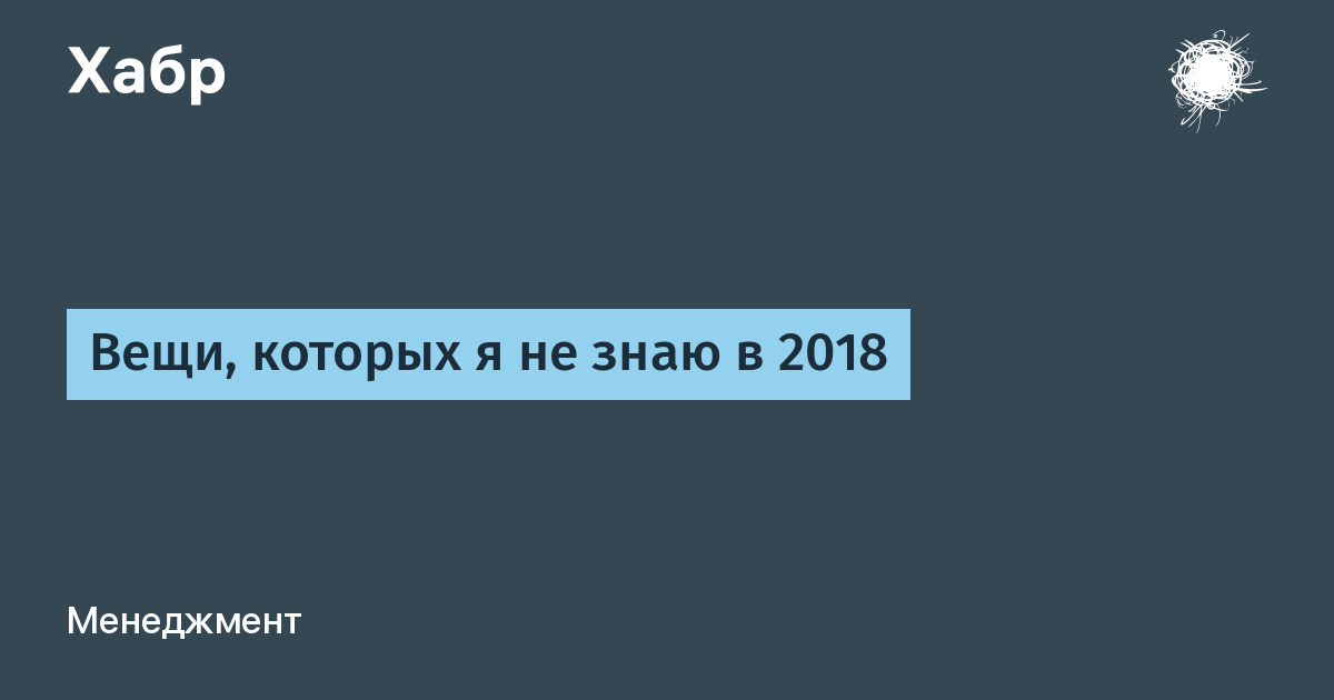 Привет, Хабр! Представляю вашему вниманию перевод статьи "Things I Don’t Know as of 2018" автора Дэна Абрамова.