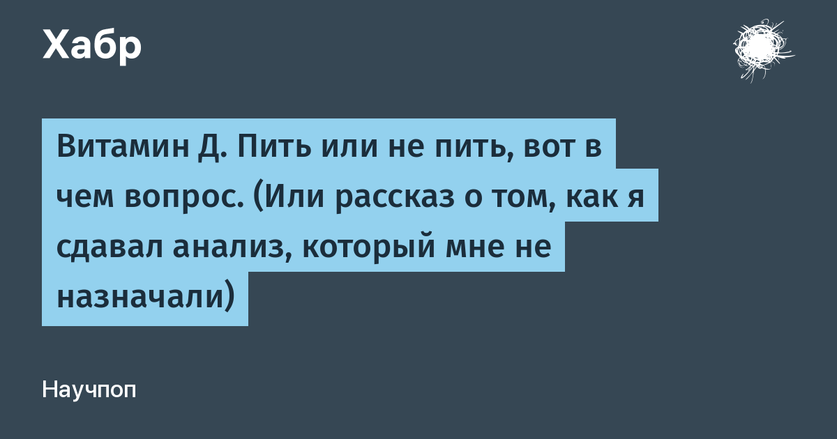 - Возможно, нам всем действительно нужно догоняться искусственно синтезированным Д-гормоном, а группа ученых из Института Медицины решила опубликовать заведомо неверные данные. Но зачем? Ради сенсации? Их работа вовсе не сенсационная. Кому может быть выгодно, чтобы все оставалось как есть и население не тратило деньги на закупку нужного ему лекарства? Я не смог придумать ответа на этот вопрос.