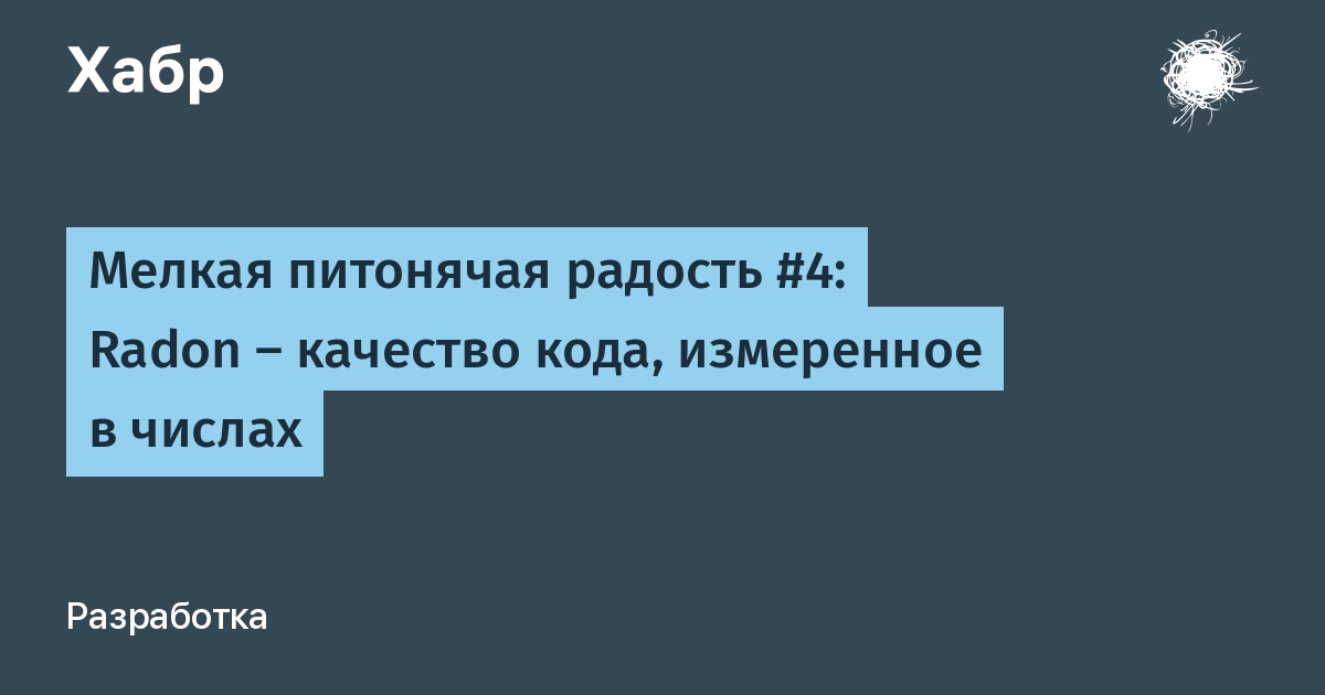 В мире Python, конечно же, есть своя штука для оценки качества кода. Она называется radon. Она написана на этом же самом Python и работает исключительно с питонячими файлами.
