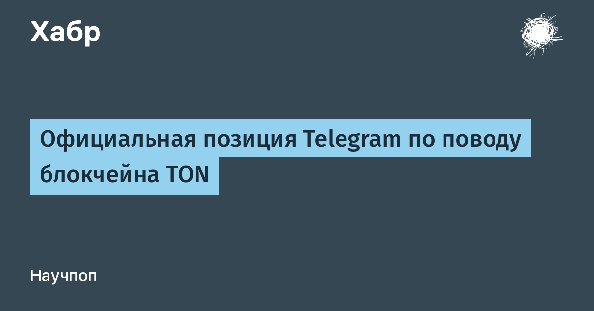 - Телеграм никак не связан с TON и вообще не при делах, в том числе отказывается встраивать кошелек TON в клиента Телеграм.
