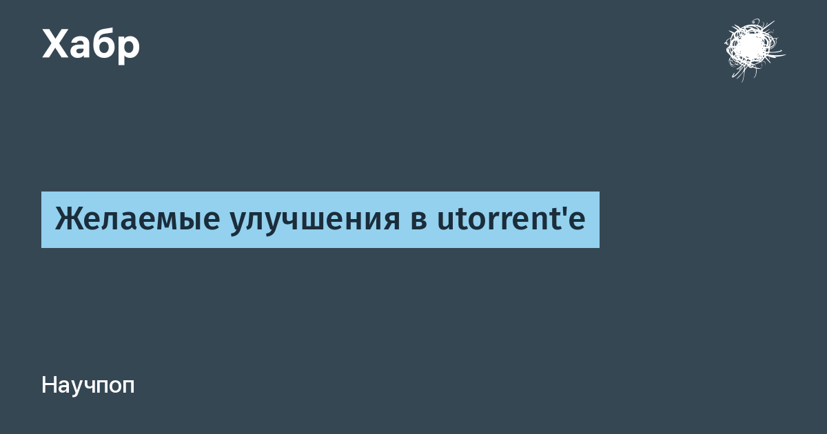 После темы про автоматизацию utorrent'a возникло несколько идей по улучшению, которые хотелось бы видеть в любимом торрент-клиенте. Не мудрено, что многие уже обсуждались, хотя нам они могли прийти в голову только что. Поэтому письма и мольбы к разработчикам были отложены до прочтения форума. И, как оказалось, не зря…