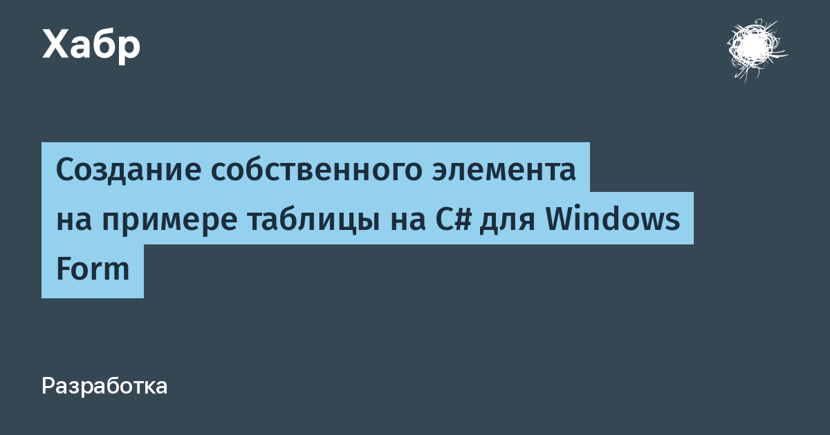 В данной статье я опишу создания своих элементов для C# Windows Form.